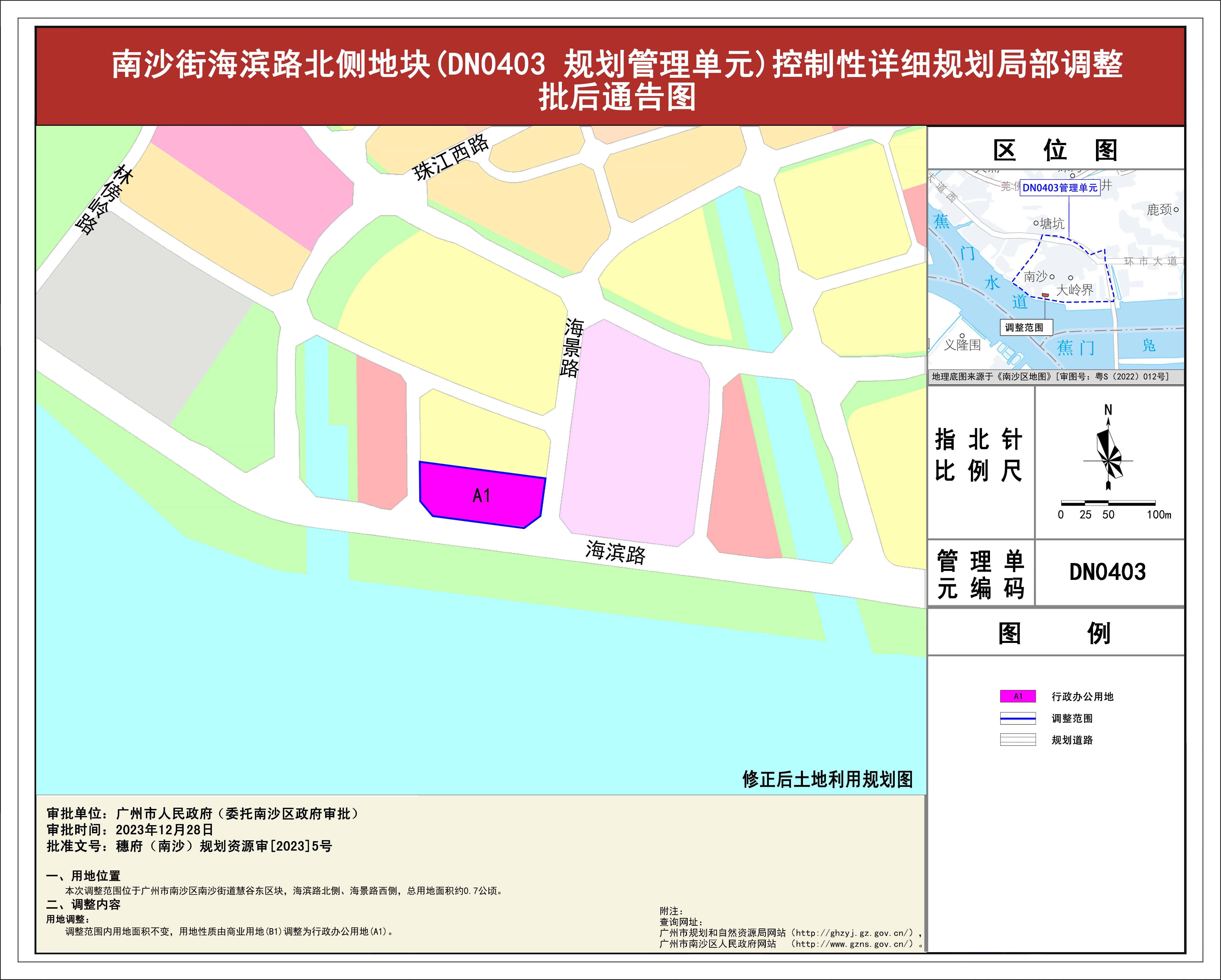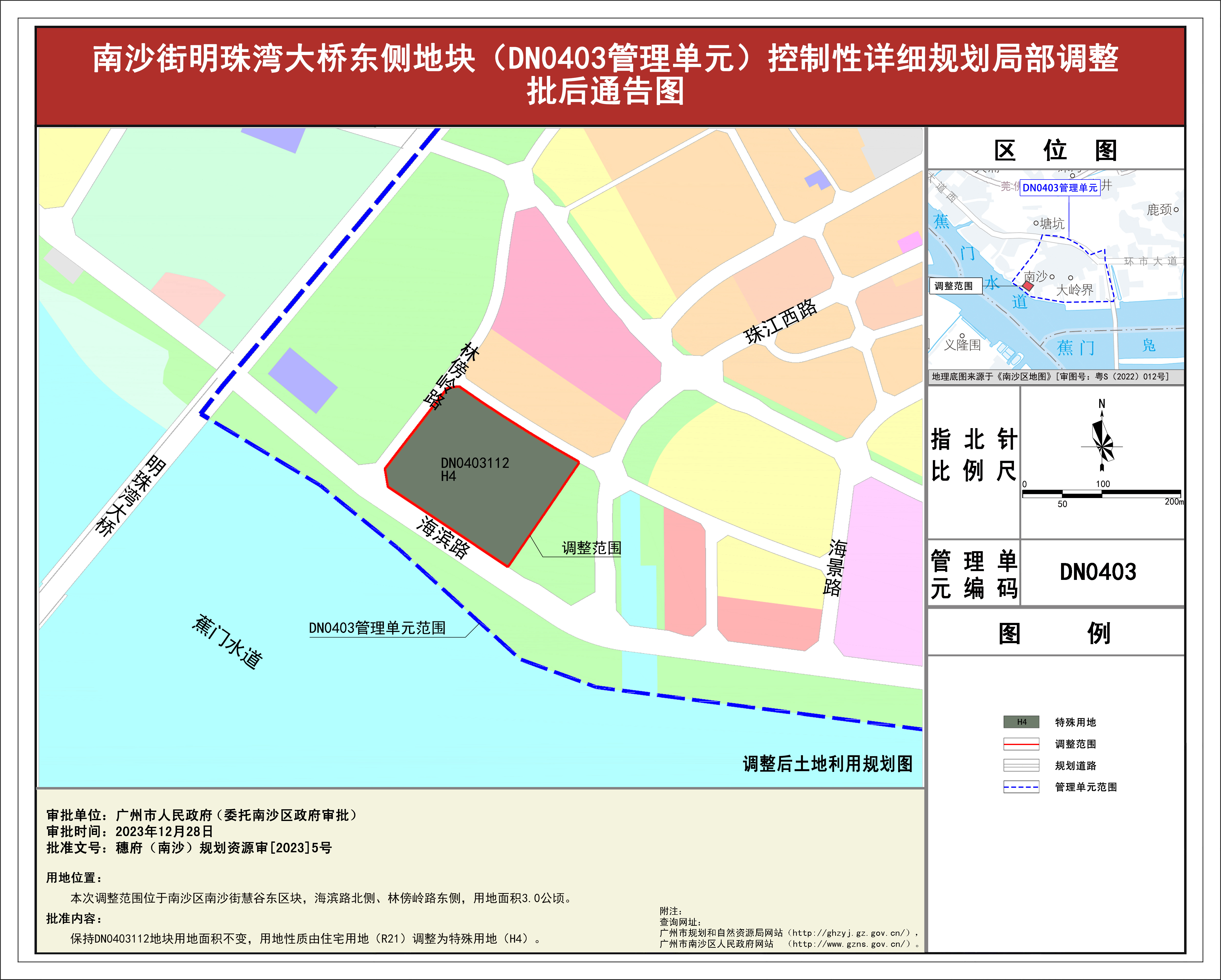 3.南沙街明珠湾大桥东侧地块(DN0403管理单元)控制性详细规划局部调整批后通告图