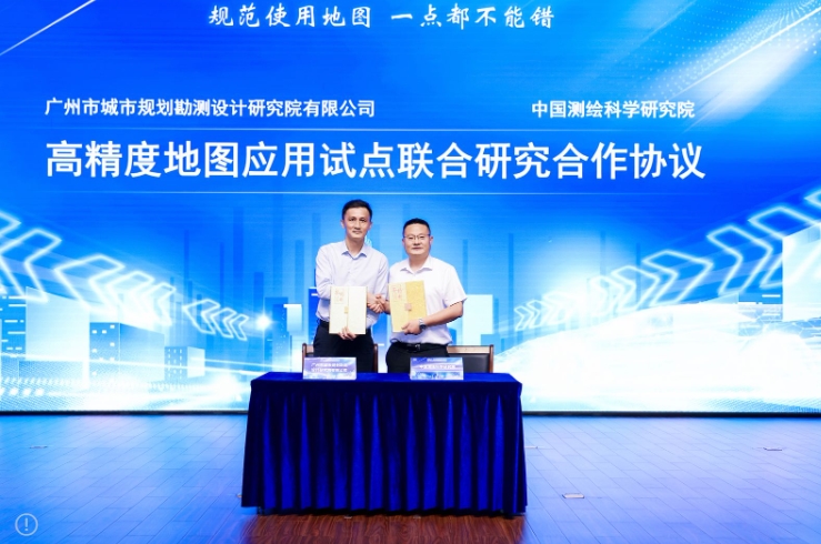 现有高精地图的采集、生产与更新分别由不同的主体进行,安全难保证,导致高精地图生产效率低、成本高、更新慢,为实现高精地图的落地应用,市规划和自然资源局下属国企广州市规划院与中国测绘科学研究院签订了关于高精度地图应用试点联合研究合作协议,包括智能网联汽车高精度地图广州应用试点、推进智能网联汽车“车路云一体化”广州应用试点、推动智能网联汽车高精度地图众源更新、安全合规、保密处理、插件联编关键技术应用与成果转化方面的技术合作,并依托车企和图商进行众源更新实地技术验证。中国测绘科学研究院自主研发的非线性保密处理技术被写入我国导航电子地图安全处理的国家强制性标准,可以为我市广州高精地图全链路安全应用提供重要技术支撑,合作将进一步打通数据流转应用环节,为探索构建“政数转化+企业更新+共享应用”的智能网联汽车“高精度地图+北斗定位增强”新型基础设施奠定坚实基础。