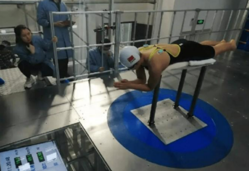图 游泳队员穿戴陀螺仪装备(惯性制导系统)进行运动姿态训练(图片来源《南华早报》)
