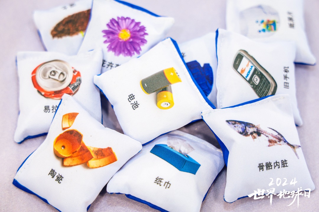 连续三次将代表不同种类垃圾的沙包投进正确的“垃圾分类”篮筐,即可获得奖励。同学们通过游戏学会垃圾分类。爱护地球,从点滴做起!