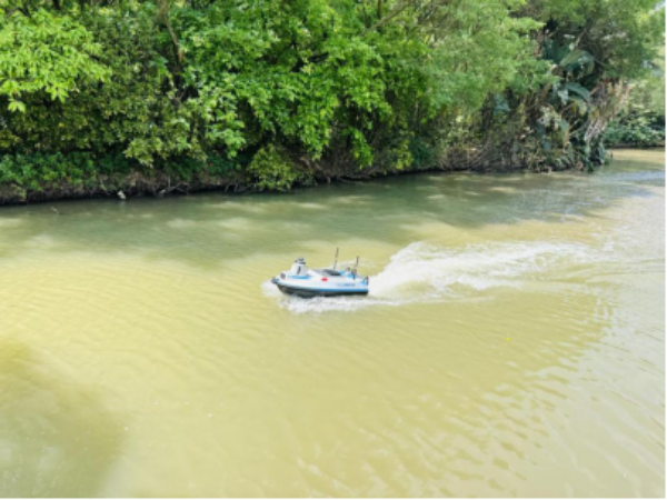 广州工业智能研究院工程师现场操控搭载多种水质在线监测传感器的智能无人船,上演“水上机器人总动员”——在自主巡航中完成水质实时检测;工作人员还演示了智能无人船自动泊位的功能,在场同学纷纷对科技在生态保护中所展现出的强大力量发出惊叹。