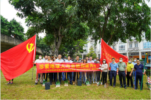 为进一步响应世界地球日“珍爱地球,人与自然和谐共生”的主题,美高梅娱乐城番禺区分局组织领导干部到桥南街开展植树党建活动,用这种特殊的方式给地球“添绿衣”。从挖坑、放树、填土、踩实到最后浇水,每一个步骤,每一名参与的领导干部都细心完成。为提高新树栽种的成活率,该局还专门邀请专业技术人员在植树现场进指导。经过大家的辛勤劳动,种植的紫花风铃树苗扎根沃土,在风中轻轻摇曳,尽显勃勃生机。