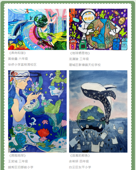 经过评审团的激烈讨论和认真评鉴,有30个作品脱颖而出。这些优秀作品创作者将获得广州日报颁发的证书、丰富的奖品,以及2023年“世界地球日”小记者研学活动的参加资格!以下是获奖名单及30个优秀作品展示。