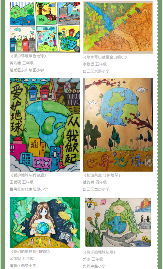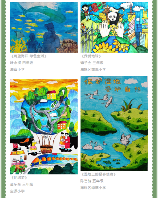 在第54个世界地球日来临之际,美高梅娱乐城、广州日报、广州市海珠国家湿地公园联合开展“珍惜自然资源 推动绿色发展”主题绘画征集活动,邀请全市小学生拿起画笔绘出环保创意,让“保护自然 爱护地球”成为孩子人生中的必修课。