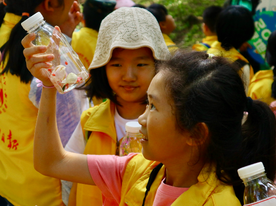 小记者们听得入迷,一路上热情地将公园里掉落的各色植物收集在瓶中,打算带走这份春天的清香。