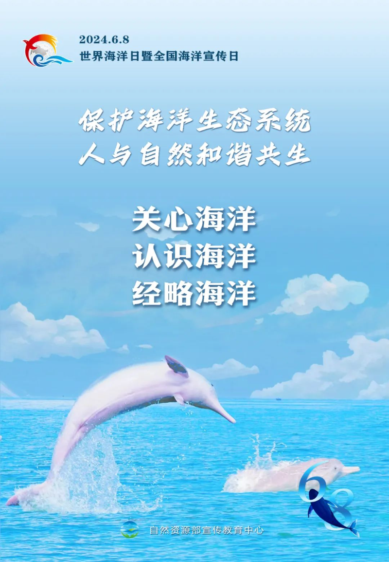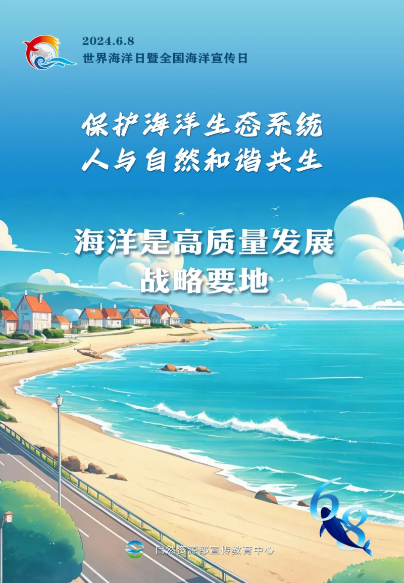 2024年6月8日是第16个世界海洋日和第17个全国海洋宣传日,活动主题是“保护海洋生态系统 人与自然和谐共生”。自然资源部宣传教育中心策划制作了宣传海报,供各地下载传播。