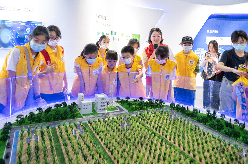 随后,参观队伍进入“数字农田”展馆,从文化历史长河中“穿越”到数字时代,小记者们对新型农业科技产生了莫大的兴趣。遥感科技的进步,为田间的万物互联装上了“动力引擎”。千亩农田,只需配备四至五个管理人员,就可以实现全流程的数字化管理。这让小记者们深深意识到,在中国,“让农民成为令人羡慕的职业”的美好愿景,是必然能够实现的。