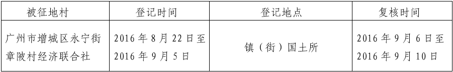 被征地村登记时间登记地点复核时间