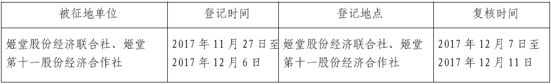 (二)本次征收土地所涉及的被安置农业人员由广州市黄埔区大沙街姬堂股份经济联合社、姬堂第十一股份经济合作社在本公告期内到广州开发区 广州市黄埔区国土资源和规划局领取办理安置农业人口征地农转非手续的函件。