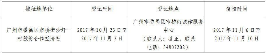 经美高梅娱乐城批准(粤国土资(建)字〔2017〕508号文),同意将广州市番禺区市桥街沙圩一村股份合作经济社,面积共0.5231公顷集体土地征收为国有土地。现将经依法批准的《征收土地方案》、市人民政府批准的《征地补偿安置方案》内容和有关事项公告如下: