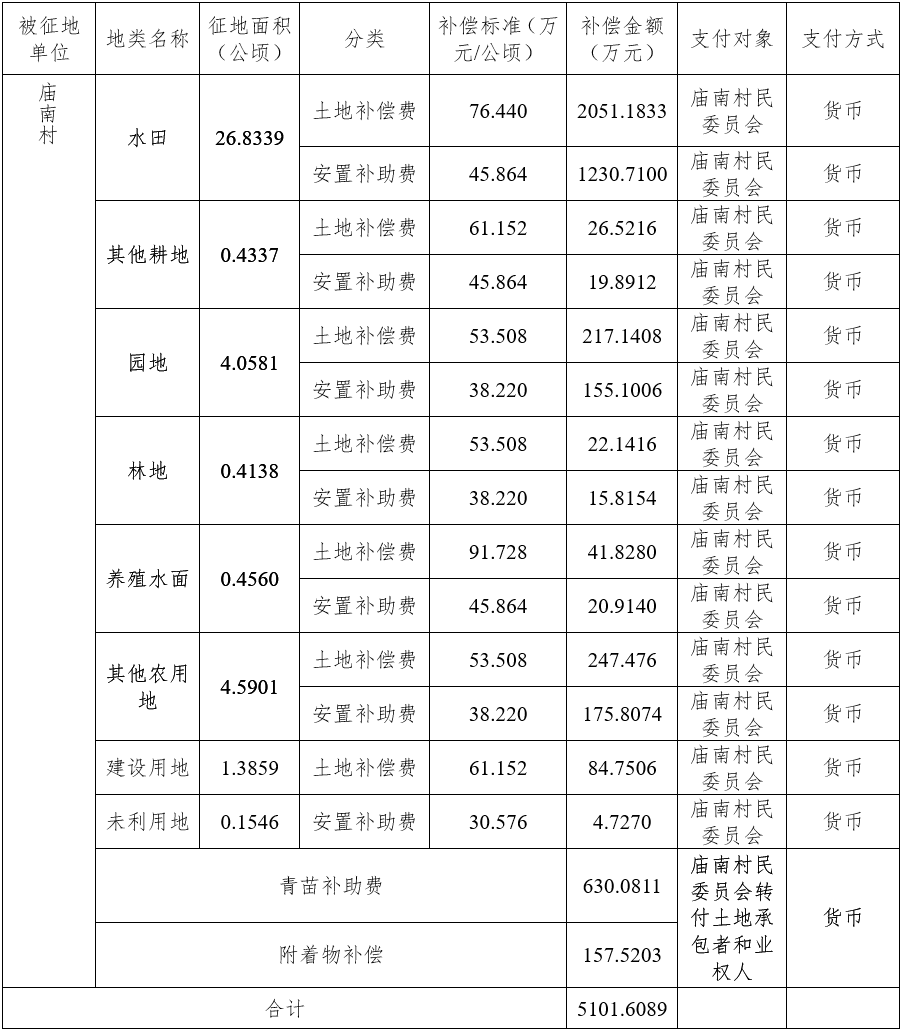 经省人民政府批准(粤国土资(建)字〔2012〕550号文),需将南沙区横沥镇庙南村共38.3261公顷(合574.892亩)集体土地征收为国有土地。现将经依法批准的《征收土地方案》、市人民政府批准的《征地补偿安置方案》内容和有关事项公告如下: