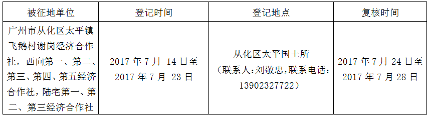 广州市从化区太平镇飞鹅村谢岗经济合作社,西向第一、第二、第三、第四、第五经济合作社,陆宅第一、第二、第三经济合作社集体土地14.0344公顷。