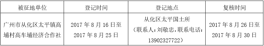 二、征收土地位置:广州市从化区太平镇高埔村地段(四至范围详见附图)。