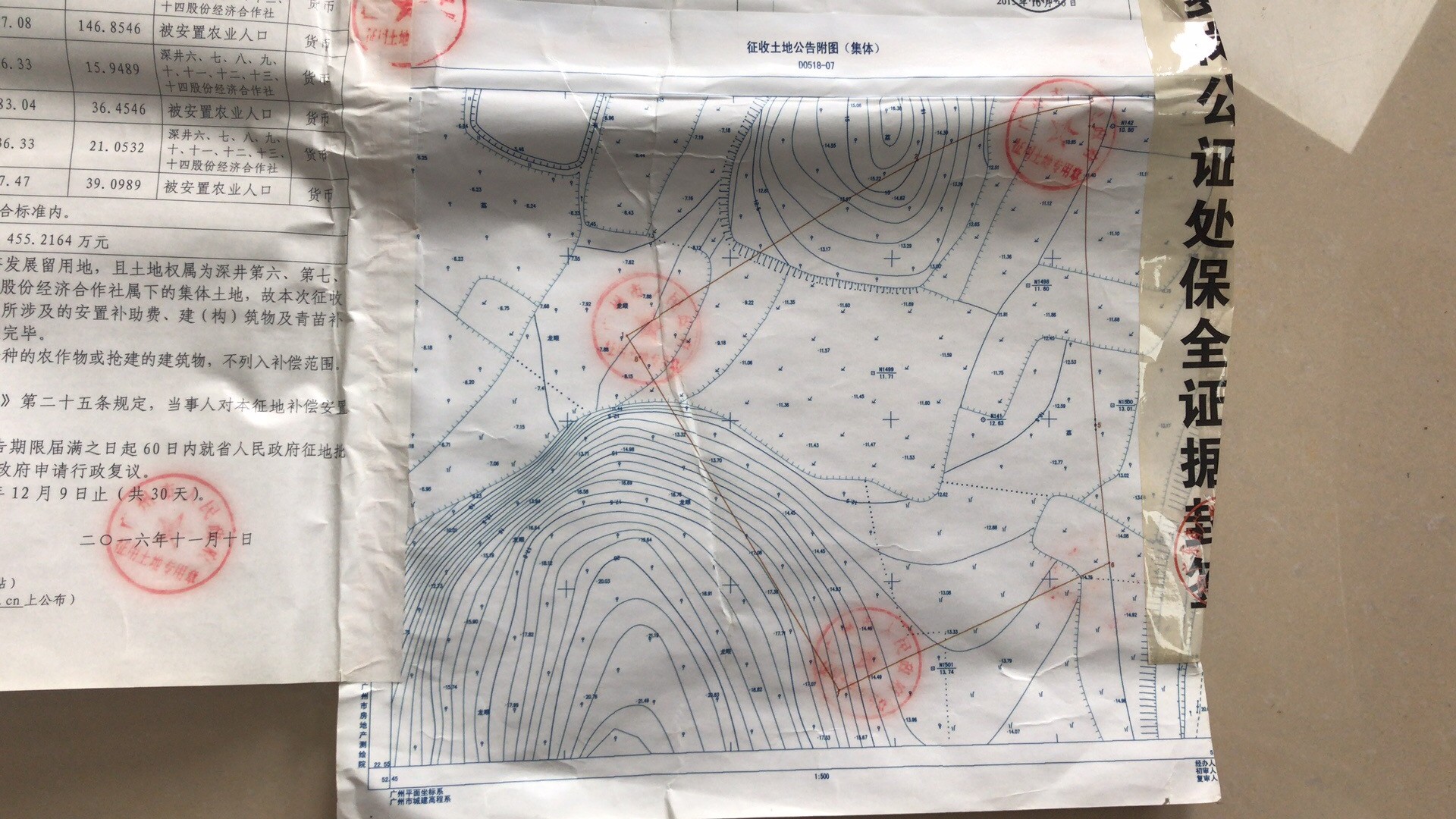 经省人民政府批准(粤国土资(建)字〔2015〕1313号文,见附件),需将黄埔区长洲街深井第六、第七、第八、第九、第十、第十一、第十二、第十三、第十四股份经济合作社属下的1.695公顷(合25.4250亩)集体土地征收为国有土地。现将经依法批准的《征收土地方案》、市人民政府批准的《征地补偿安置方案》内容和有关事项公告如下: