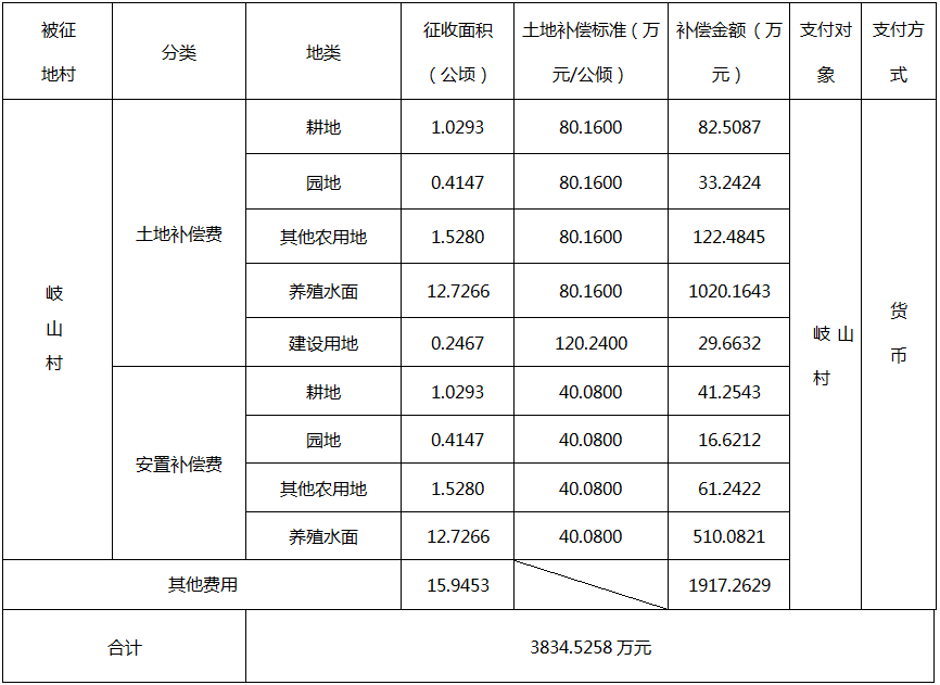 花都区秀全街岐山村集体土地合计15.9453公顷(合239.1795亩),其中耕地1.0293公顷(合15.4395亩)、园地0.4147公顷(合6.2205亩)、其他农用地1.5280公顷(合22.92亩)、养殖水面12.7266公顷(合190.899亩)、建设用地0.2467公顷(合3.7005亩);
