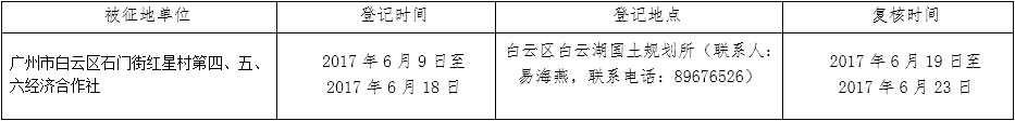 二、征收土地位置:白云区石门街红星石沙路地段(四至范围详见附图,用地方案号:2016KJ01110002)。