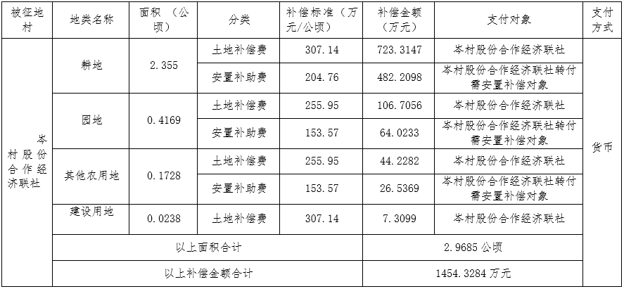 (二)本次征收土地所涉及的被安置农业人员由岑村股份合作经济联社以货币补偿形式安置。