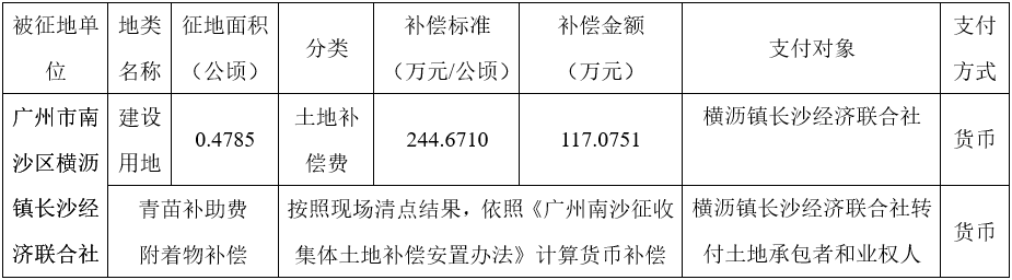经省人民政府批准(粤国土资(建)字〔2016〕436号文),需将南沙区横沥镇义沙、长沙经济联合社44.1036公顷(合661.554亩)集体土地征收为国有土地。现将经依法批准的《征收土地方案》、市人民政府批准的《征地补偿安置方案》内容和有关事项公告如下: