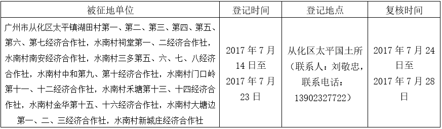 二、征收土地位置:广州市从化区太平镇湖田村、水南村地段(四至范围详见附图)。