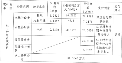 广州市萝岗区九龙镇红卫村集体土地0.4797公顷(合7.1955亩),其中林地0.3330公顷(合4.9950亩),未利用地0.1467公顷(合2.2005亩)。