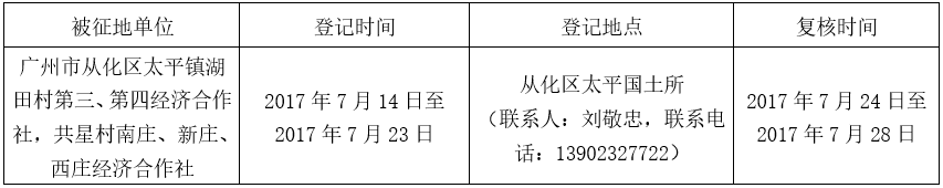 二、征收土地位置:广州市从化区太平镇湖田村、共星村地段(四至范围详见附图)。
