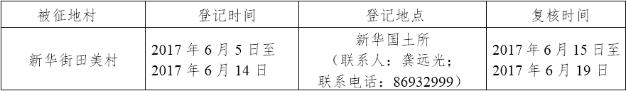 经省人民政府批准(粤国土资(建)字〔2017〕231号文),需将广州市花都区新华街田美村属下的集体用地5.2250公顷(合78.375亩)征收为国有土地。现将经依法批准的《征收土地方案》和市人民政府批准的《征地补偿安置方案》内容和有关事项公告如下: