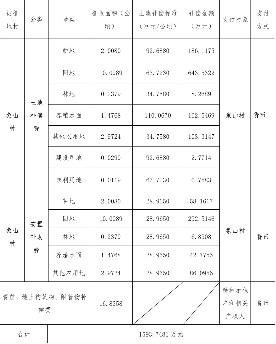 经省人民政府批准(粤国土资(建)字[2014]180号文),需将广州市花都区花东镇象山村、南溪村属下的集体土地26.1696公顷(合392.544亩)征收为国有土地。现将经依法批准的《征收土地方案》和市人民政府批准的《征地补偿安置方案》内容和有关事项公告如下: