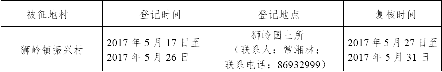 五、被征收土地四至范围内的土地所有权人、使用权人在本公告规定的期限内,持土地权属证书或其他有关证明材料,到指定的地点办理征地补偿登记,请互相转告。