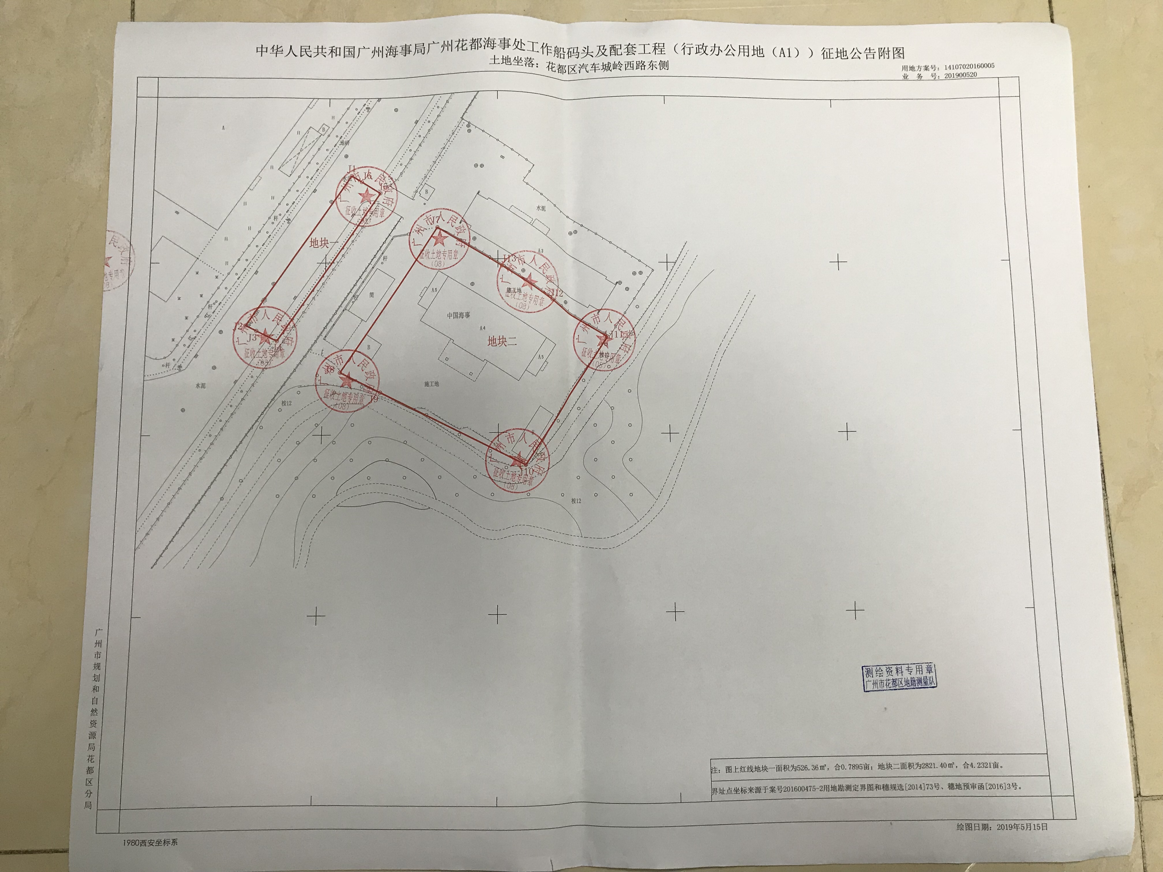一、建设用地项目名称:广州花都海事处工作船码头及配套工程(行政办公用地(A1))。