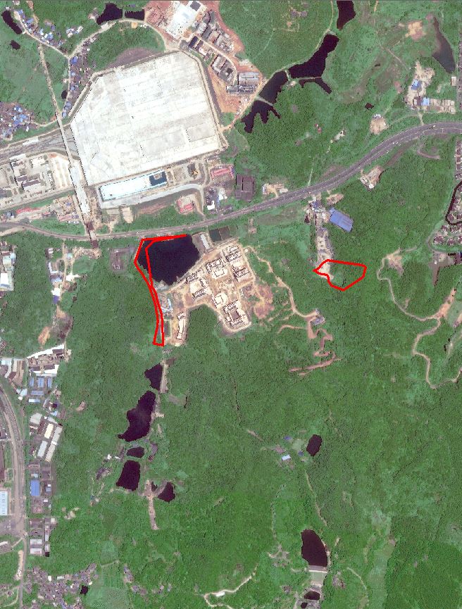 三、被征地村及面积:黄埔区九龙镇镇龙村经济联合社、镇龙村屋吓经济合作社1.0293公顷,增城区中新镇团结村山口第一经济合作社1.2667公顷。