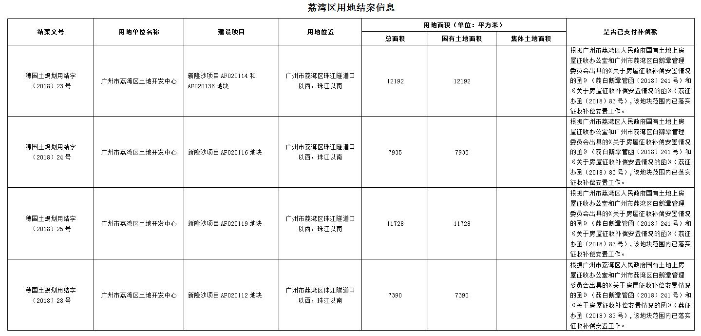 荔湾区用地结案信息